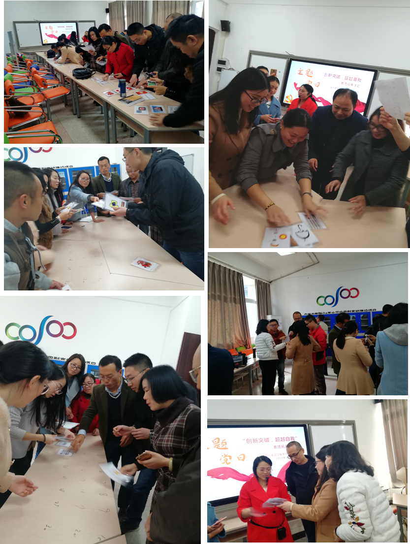 2018年11月8日,为丰富公司教工党支部主题当日活动,培养公司教职工创新精神、创新意识和创新能力,以及团队协作能力,特举办“创新突破,超越自我”主题党日素质拓展活动,太阳集团tyc151教工支部在慎思楼2栋216举办了一次别开生面的“急速60秒”素质拓展主题党日活动。