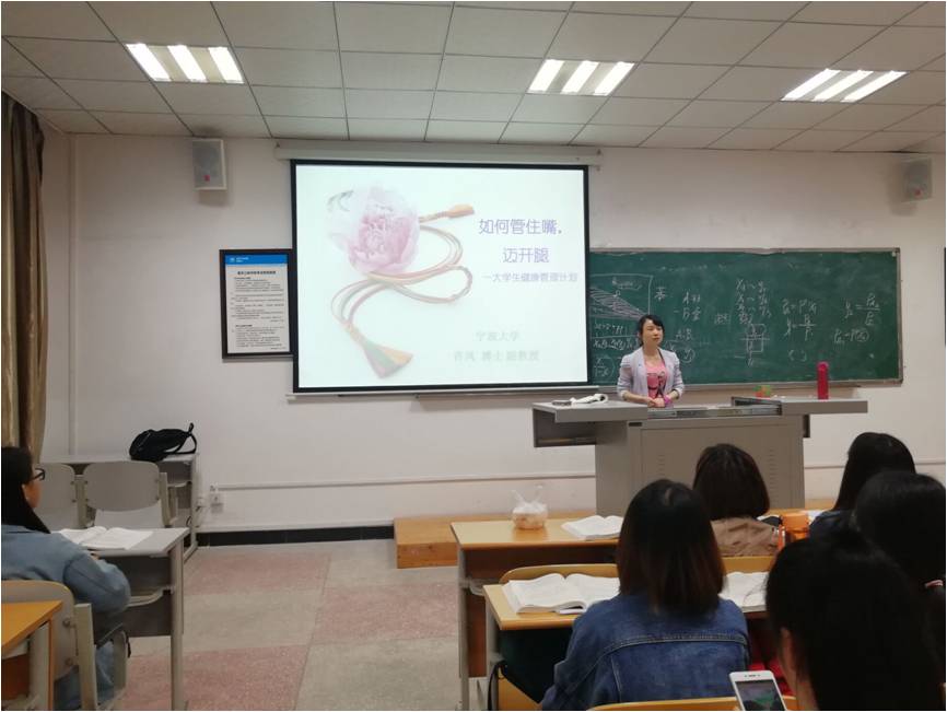 6月1日晚8点,宁波大学许凤博士应邀在公司4教502进行学术讲座,讲座主题为“如何管住嘴,迈开腿——老员工健康管理计划”,吸引了众多研究生与本科生前来聆听讲座。
