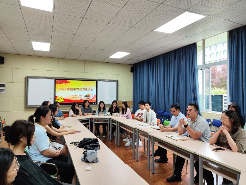 在端午节来临之际,6月6日下午,公司在慎思楼2栋216召开2024年端午节慰问座谈会,公司党总支副书记陈文剑、学工办主任闫兴运、全体辅导员、各年级员工代表参会。