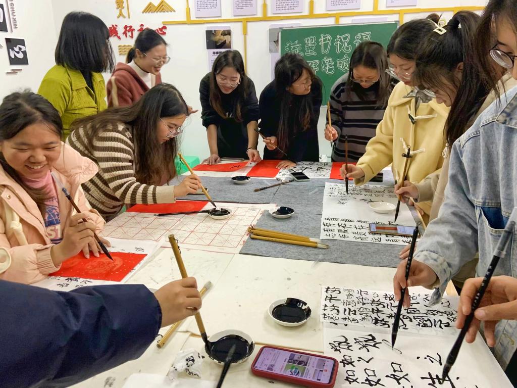 活动伊始,工作人员向同学们简单介绍了对联文化。对联具有广泛的群众特色,作为一种精练小巧的汉字民俗文艺,具有体裁精练、内容丰富、可俗可雅等特点。接着,同学们两两一组,挥洒笔墨,共同创造出了属于自己独一无二的对联,其中不乏有对专业前景的期盼,有对美好人生的祝愿。