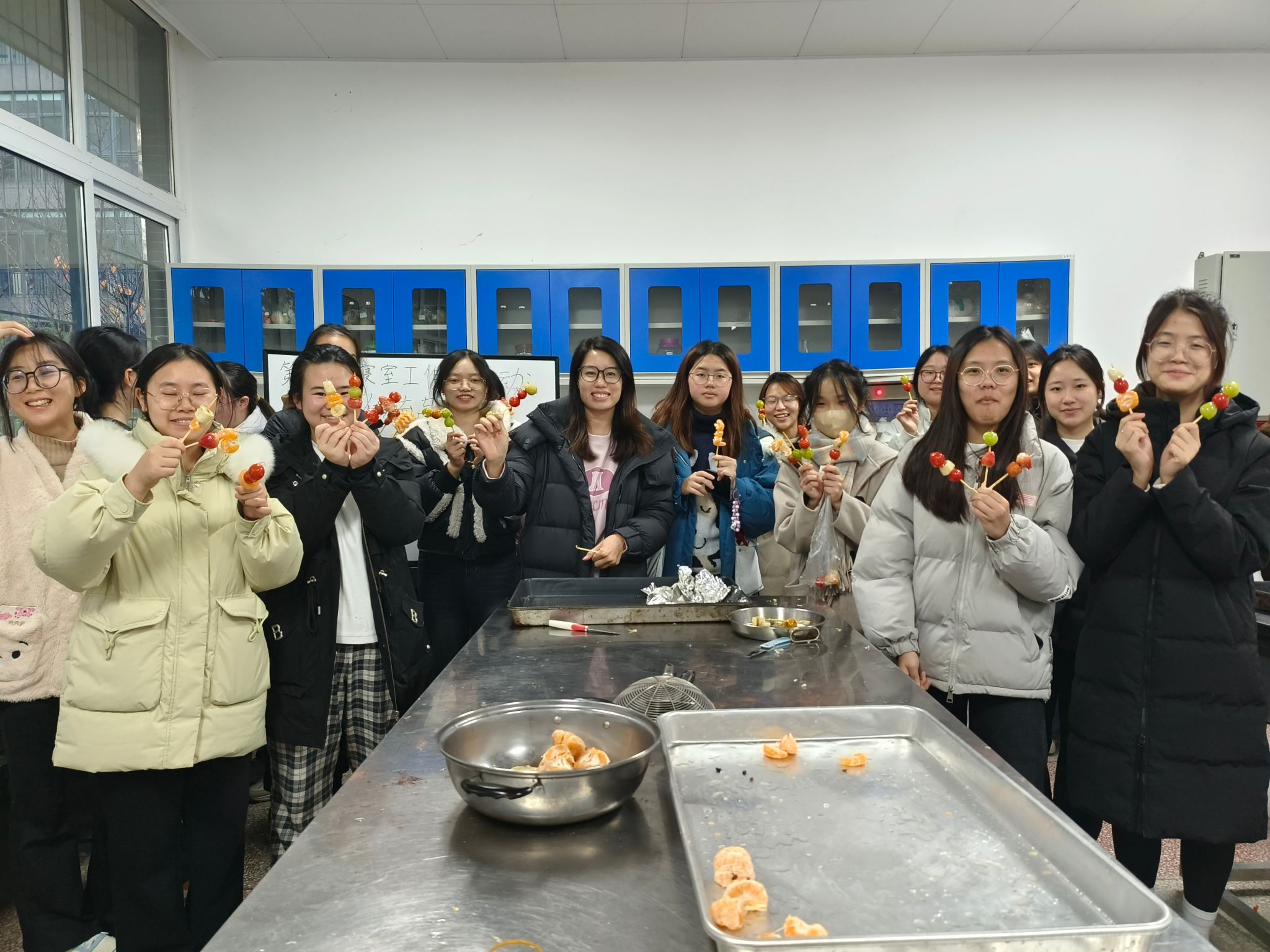 为缓解同学们期末复习压力,同时将传统的糖葫芦工艺与现代的创新理念相结合,12月5日下午15:30,公司初心工作站于慎思楼2栋106实验室开展“寝室工作日”活动:向世琼老师带领同学们制作糖葫芦,共计20人参加。