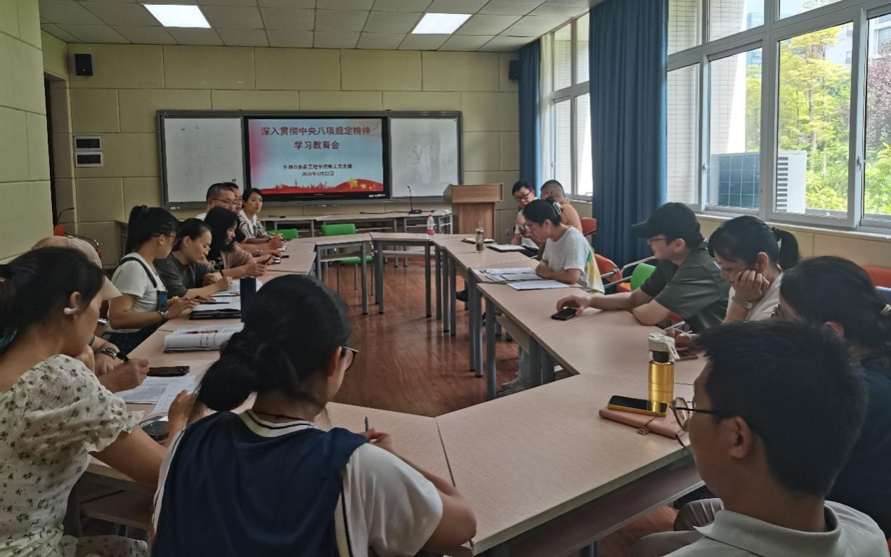 首先,党支部组织委员向丽霞同志领学了《中共中央政治局贯彻落实中央八项规定实施细则》《把中央八项规定作为铁规矩、硬杠杠》以及习近平总书记关于厉行勤俭节约、反对铺张浪费的部分重要论述,号召全体党员加强自身作风建设,严于律己,勤俭节约。随后,党支部宣传委员胡景涛同志通报了近期部分违反中央八项规定精神的典型案例,对全体党员进行警示教育。