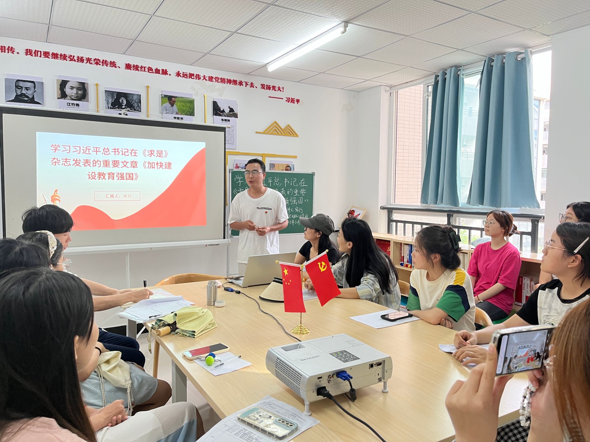 活动中,宋行同志系统解读文章内容,围绕教育强国的战略定位与核心目标,点明其对于国家发展、民族复兴的深远意义;深入阐述教育发展总体要求,明确新时代教育事业的方向与准则;聚焦基础教育攻坚方向,探讨提升基础教育质量、促进教育公平的路径;剖析高等教育改革创新,强调培养创新人才、推进团队建设的重要性;解读教育支撑体系构建,涵盖团队队伍、教育资源配置等关键要素;着重强调党的领导与保障措施,凸显党在教育强国建设中的引领作用。活动结束,同学们纷纷表示将以文章精神为指引,立足本职,在学习实践中勇担使命,为推进教育强国建设贡献自己的力量,共同书写教育事业发展的新篇章。