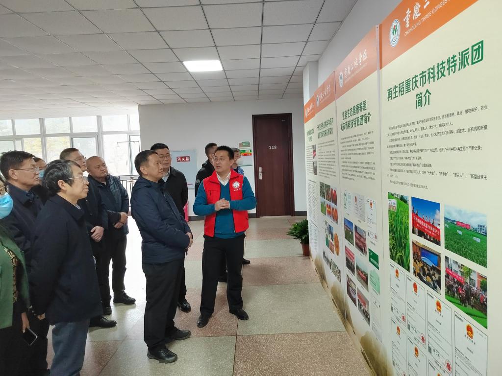 骆孟鑫首先从场地设施、人才队伍、工作内容、主要成效等方面介绍了科技特派员工作站的基本情况。国家“三区”人才、科技特派员代表赵峰重点介绍了生猪生态健康养殖、再生稻、万州区特色柑橘与中药材等3个重庆市科技特派团的情况。巴雅尔一行还参观了科技特派团的科研成果、科技特派员工作室、学术交流室。