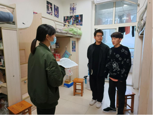 公司辅导员在走访过程中询问了同学们近期学习和生活状况,交流中了解同学们的新学期学习计划、生活中遇到的困难、周末安排等情况并给予建议,希望同学们保持积极向上的态度,合理安排时间,劳逸结合。同时,提醒同学们严格遵守疫情防控政策,提高个人防护意识,不聚集,戴口罩,坚持自我健康监测和每日健康打卡;叮嘱同学们严格遵守宿舍管理规定,保持寝室卫生,创造健康、卫生的寝室环境。