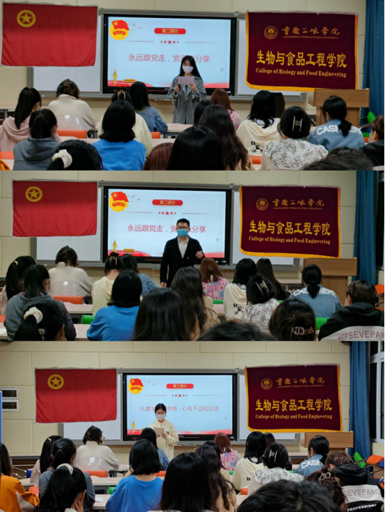 活动共分为四个环节。首先,团学骨干代表樊丽娟向参会人员讲述党为二十大召开所做的准备工作,并从奋进新征程和建功新时代两个方面带领大家走进二十大、共迎二十大。接着,中共党员黎欢同志、任芝雨同志和中共预备党员张兴源同志依次分享他们如何学习党史、如何理解党的历史经验成就和革命先辈的先进事迹,号召广大青年员工坚定党的领导,永远跟党走。然后,团学骨干刘欣悦和罗旋作学习感想表示,我们青年员工要自觉担当时代重任,开新局,谱新篇,努力成为可堪大用能担重任的栋梁之才。最后,团学骨干代表樊丽娟作学习总结,呼吁我们要坚定理想信念,传承红色基因,补足精神之钙,在新时代新征程中奋勇争先建功立业。