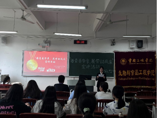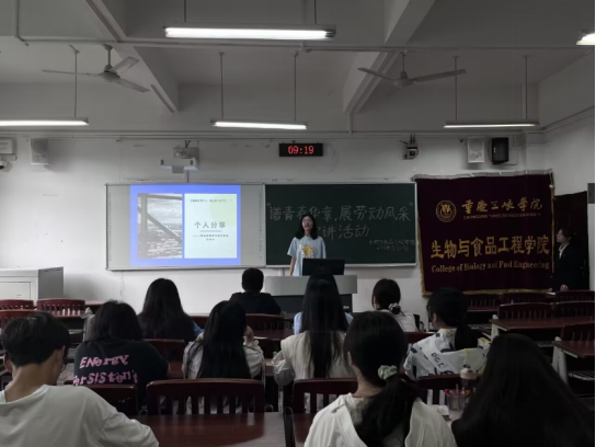 活动过程中,陈香玲、魏茂家等青年志愿者先进个人走上讲台,分享了他们自身的志愿服务经历、个人心得体会等方面,提到了结合公司专业特色能够开展丰富的劳动实践活动,如食品专业可以开展食品安全知识宣讲、园艺专业可以进行植物知识科普等,从专业实践角度出发给同学们讲好劳动故事、弘扬劳动精神。