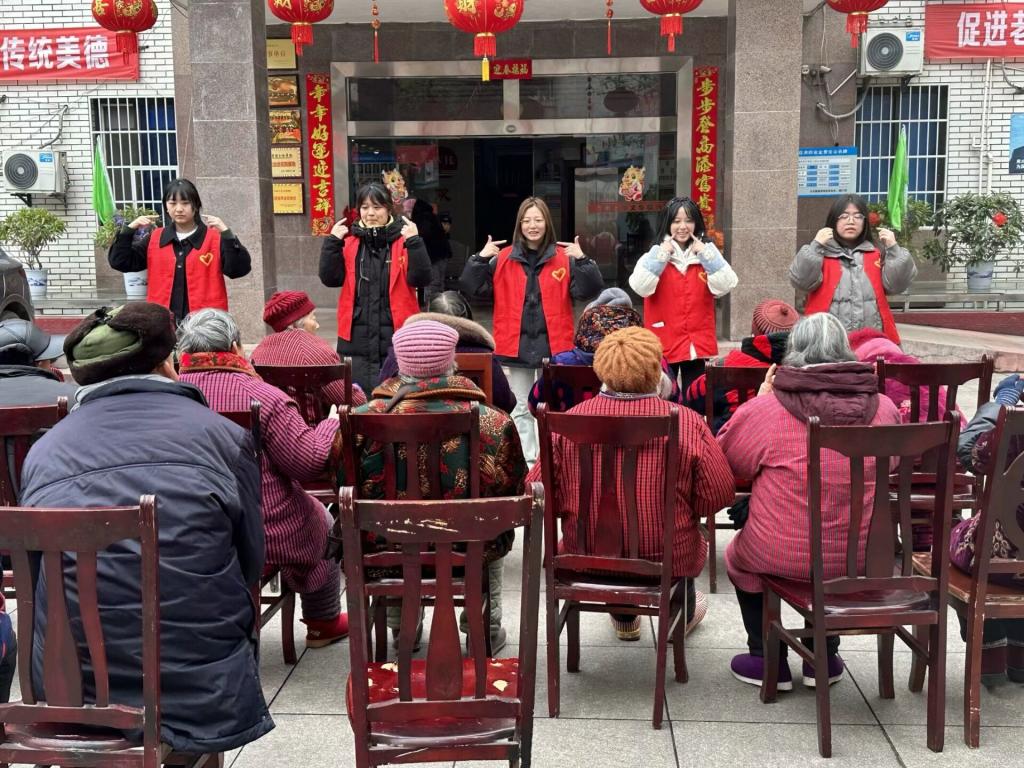 在活动开始时,20余名志愿者分工协作,展开卫生打扫、歌曲演唱和健康操教学等志愿服务项目。在歌曲演唱环节,志愿者们用心演唱经典老歌,唤起老人们美好的回忆,老人们也跟着哼唱,脸上洋溢着幸福的笑容。而在健康操教学环节,志愿者们耐心细致地指导老人们进行健康操动作,共同享受运动带来的快乐和健康。活动中,志愿者还为老人们准备了手工制作的百合花,并附上诚挚的祝福。这份小小的心意让老人们感受到了关爱和温暖,场面温馨感人。最后,大家一起合影留念,留下了这美好而难忘的时刻。