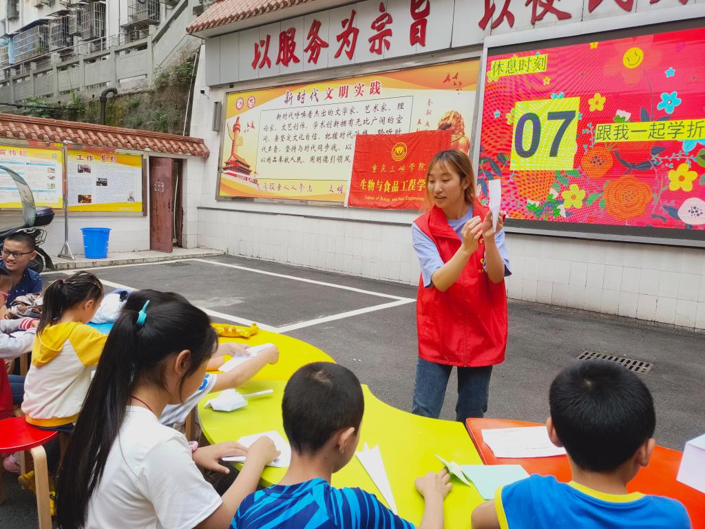 活动现场,小朋友们热情高涨,积极配合。志愿者带领小朋友走进课堂,从小朋友们正处在少年时期引出第一个党史知识点“五四青年节”,接着,志愿者讲述了英雄人物江姐、叶挺的先进事迹,并结合视频、歌曲、图片进行诗歌朗诵,加深小朋友们对革命先烈精神的感悟。在游戏环节中,志愿者协助小朋友制作“纸飞机”,并为“纸飞机”命名,随后小朋友们一齐放飞“纸飞机”,一架架承载着小朋友们美好愿望的“纸飞机”,寄托着小朋友们想成为军人、科学家、运动员的梦想飞向天空。最后,在志愿者的的带领下,全场小朋友们学唱《祖国的花朵》,积极上台表演的小朋友也赢得全场掌声。活动结束,志愿者黎丹丹表示,通过本次活动,进一步加深了对革命精神的认识,同时从小朋友们专注的眼神中体会到传播党史文化的意义。