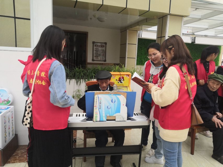 志愿者们到达天援福利院后,一边跟老人寒暄问候,一边听老人们诉说心声,气氛融洽又温馨。稍作调整后,志愿者有序地为老人们表演节目,包括经典老歌独唱、革命歌曲合唱、舞蹈、乐曲演奏等精彩纷呈的节目,老人们也情不自禁的拍手称赞。他们把心意化作宛转的歌声,化为优美的舞蹈,让老人们感受到温暖与关怀。表演结束后,志愿者们与老人们进行深入交流,聆听他们的心声。在此期间,每个人的脸上都洋溢着幸福的笑容,整个敬老院萦绕着爱的暖流。