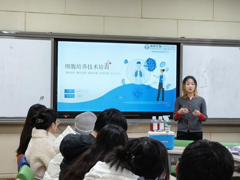 培训期间,王老师从细胞培养基础知识、细胞培养操作技术、消毒与灭菌技术、细胞污染的检测与控制以及实验室的使用等方面向同学们进行了详细的介绍。