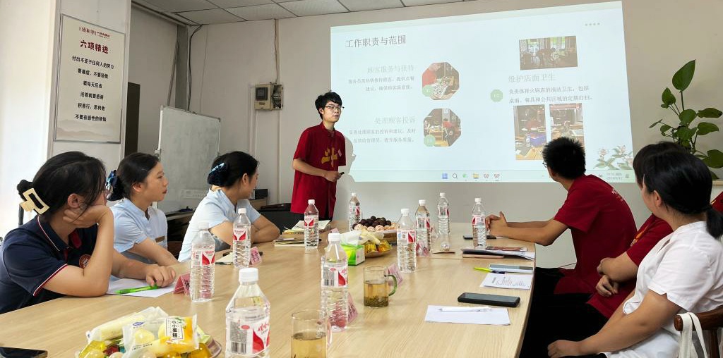 实习生代表肖龙妹、万杰、李雪等五位员工针对实习过程进行分享。骆孟鑫表示,此次座谈会活动是善墨餐饮企业与太阳集团tyc151校企合作的重要内容,双方都高度重视此次活动,希望同学们能够展现出积极主动的工作态度,勇于面对挑战,校企同行,共话时代发展新机遇!
