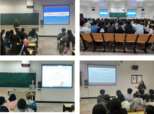 会议伊始,汪开拓简要介绍了集中实习和分散实习两种实习方式,并要求大家参与到生产实习中去,为就业积累实践经验,同时,针对简历制作、模拟面试技巧进行了指导与讲解。随后,杜慧慧从毕业实习的内容及要求、主要工作安排及实习的管理方法等内容对毕业生产实习计划及相关文件展开详细的解读,并就同学们产生的疑问进行现场解答。最后,许美琳强调,在这个阶段要学会转变身份,进行多方沟通做好实习工作,在实习就业工作中有一个良好的心态。