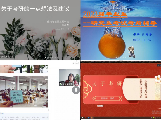 为了缓解员工考研压力,以更好的状态投入最后一个月的复习冲刺,11月24日-11月25日,公司通过线上腾讯会议,分专业成功组织开展了三场“2023届毕业生研究生考试考前辅导”。公司专任教师李彦杰、周大祥、王兆丹、吴应梅、甘丽萍和杨玲主讲,2023届毕业生辅导员熊小飞主持会议,100余名考研员工参会。