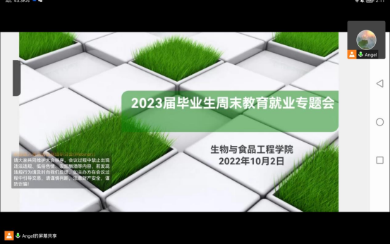 10月3日下午14:00,公司召开2023届毕业生就业专题线上周末教育,公司2023届全体毕业生参加,会议由2023届毕业生辅导员熊小飞主持。