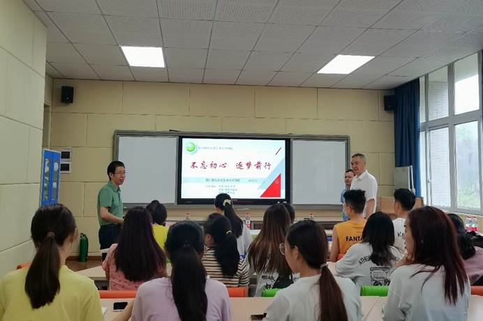 会议分为三个议程。首先由研究员陶向为同学们介绍四川师范老员工命科学公司团队队伍、专业方向、就业情况、研究方向、研究成果以及合作平台等内容。接着经理左勇教授和党政办主任鲜耀为同学们补充介绍该校的地理优势、平台优势,并向同学们强调考研的选择、心态以及对自我的评估。最后同学们展开了积极地提问,老师们耐心地为同学们解答,会议氛围良好。