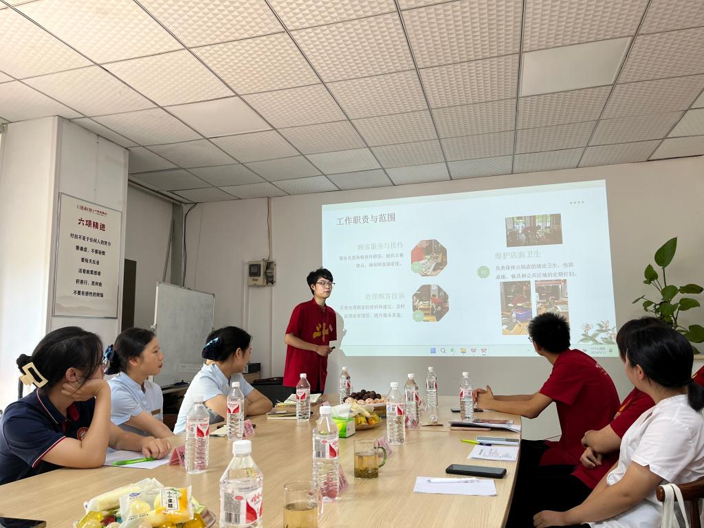 座谈会上,实习生代表肖龙妹、万杰、李雪等五位员工针对实习过程进行分享。骆孟鑫表示,此次座谈会活动是善墨餐饮企业与太阳集团tyc151校企合作的重要内容,双方都高度重视此次活动,希望同学们能够展现出积极主动的工作态度,勇于面对挑战,校企同行,共话时代发展新机遇!