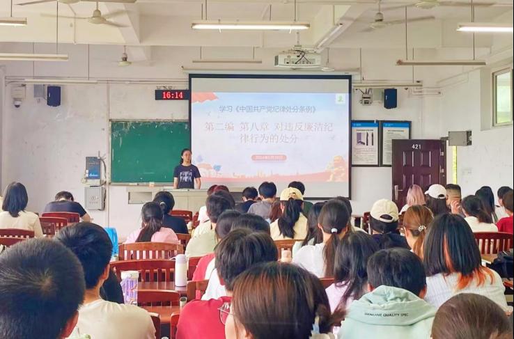 本次党纪学习教育由党支部书记许美琳领学,首先从《中国共产党纪律处分条例》第八章引入,深入解析了廉洁自律的基本要求和标准,以及哪些行为属于违反廉洁自律的范畴,使青年党员对廉洁自律有了清晰认识,并在日常生活中做到心存戒尺、行有所止。然后,以案例方式详细列举了违反廉洁自律的各种情形。